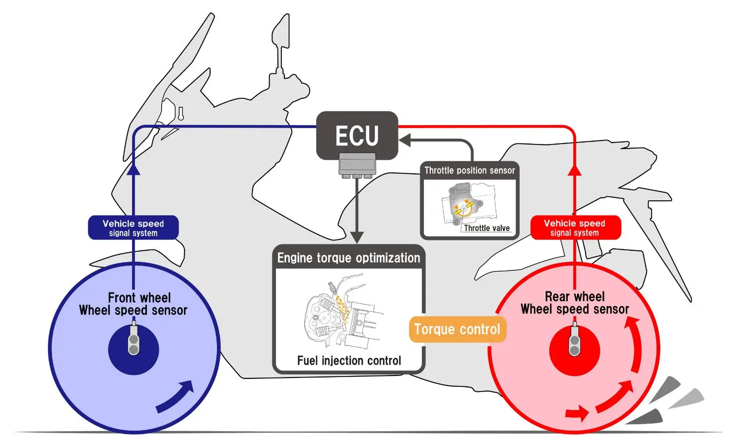 Senses an imminent loss of rear wheel traction and reduce torque to allow the tire to grip.