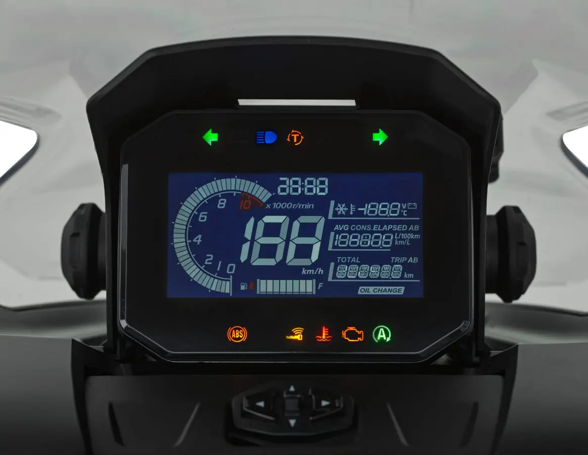 Disc brakes at the front and rear with a single ABS set up to increase control and confidence when braking with MyMAP Certificate.